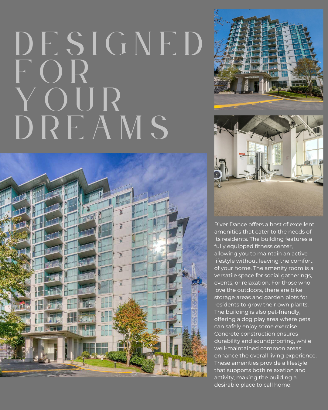 Quick details: 1 bath, 2 parking stalls, strata $474, 2025 taxes $1,787, built 1999, freehold strata. Amenities include fitness centre, bike room, amenity room, garden plots, and a dog play area, plus elevator and in-suite laundry. You’re also across from Riverfront Park with a playground, tennis courts, and basketball courts.